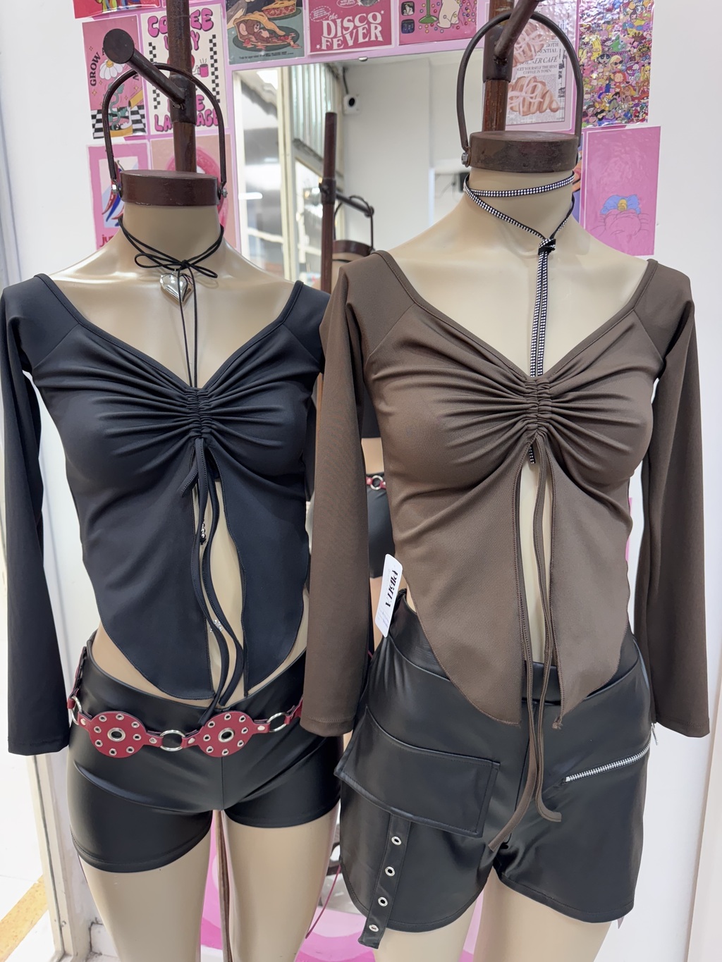 Remera de microfibra con frunce en la parte delantera y tiritas en picos